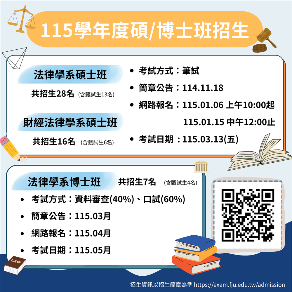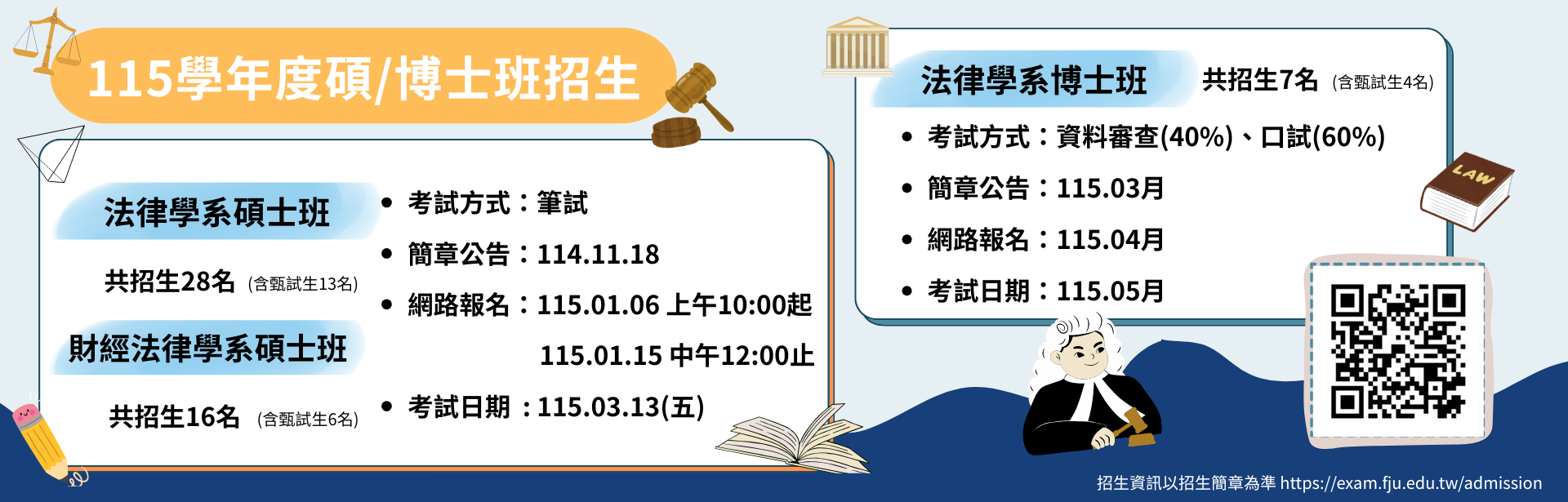 | 【甄試入學】115學年度財法所甄試入學口試時間表 一般公告2025/10/23 | MORE |