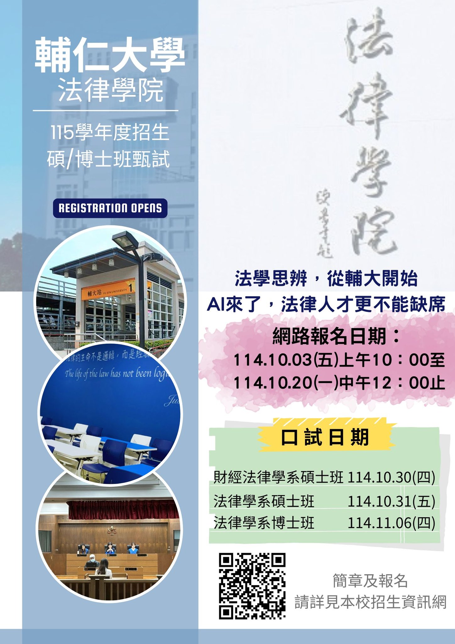 3.輔仁大學法律學院碩士班入學優異獎勵金申請辦法