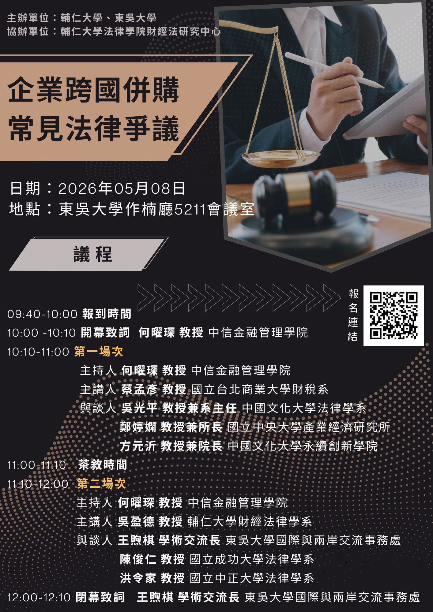 【活動報名】20260508企業跨國併購常見法律爭議學術研討會