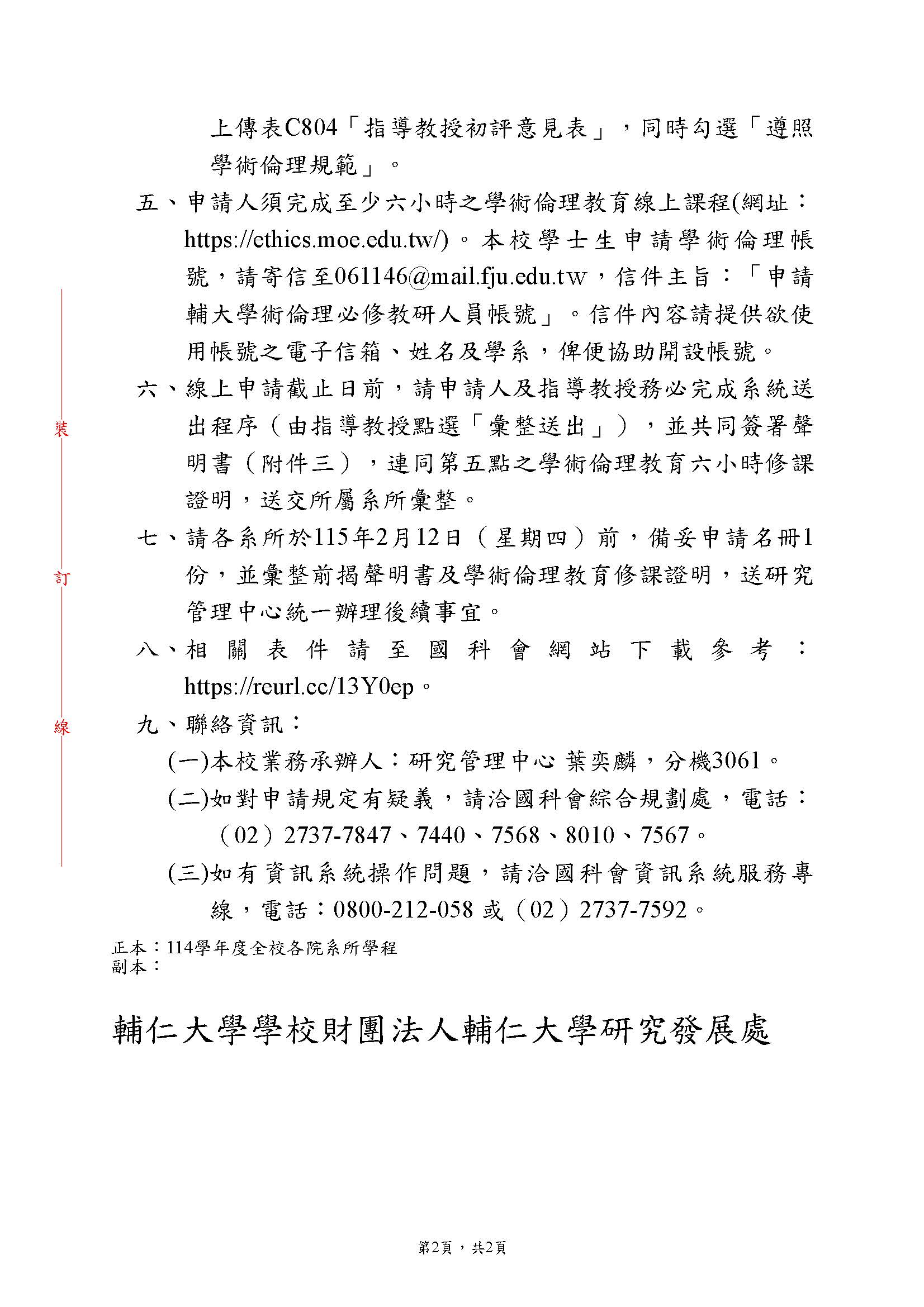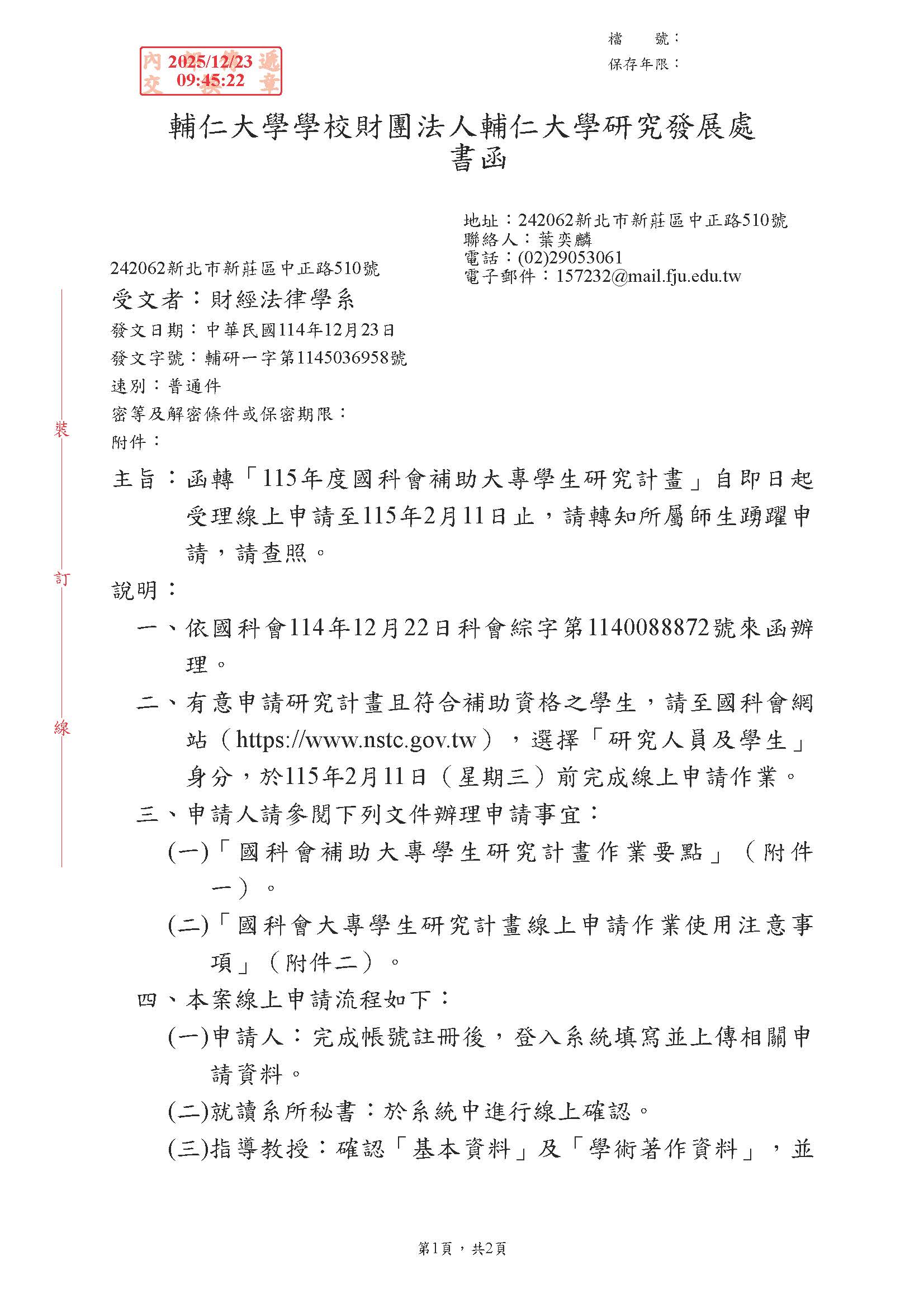 【研究計畫】「115年度國科會補助大專學生研究計畫」自即日起受理線上申請至115年2月11日止