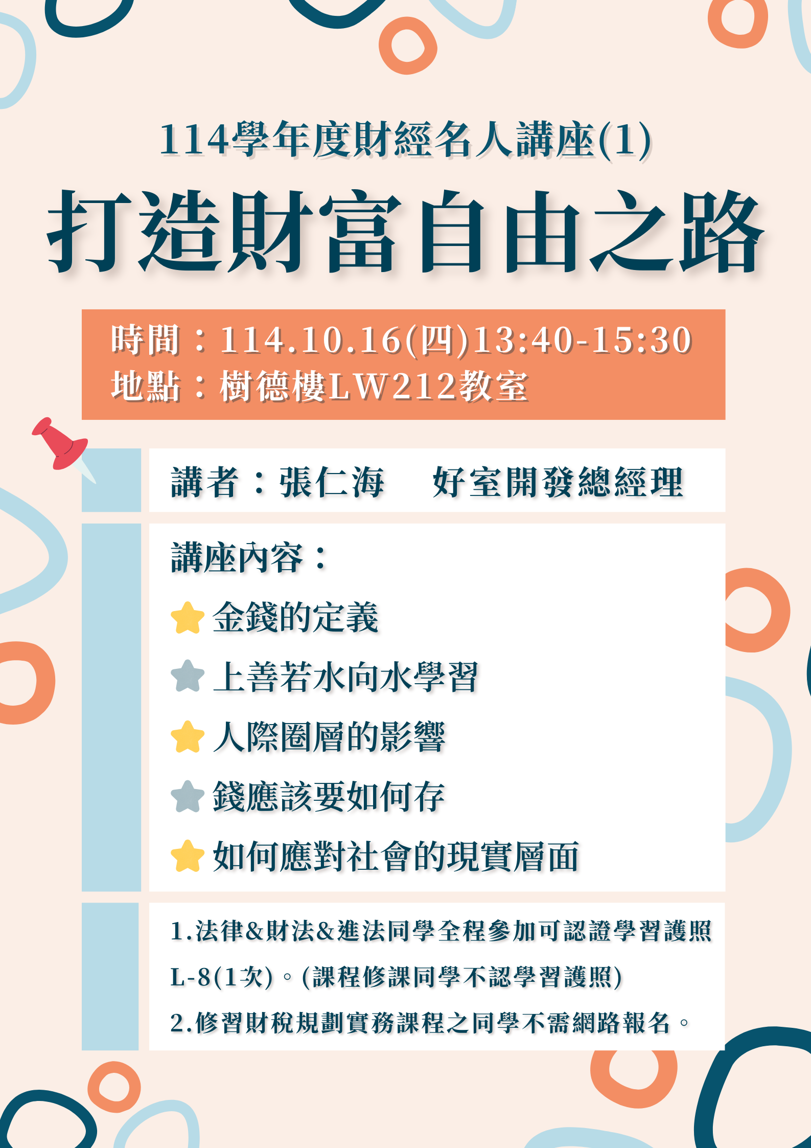 【活動報名】114學年度財經名人講座(1)-打造財富自由之路